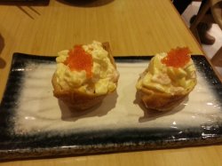 位置很好找的,在江汉路万达广场A座,一楼,靠近宝丽金这边了,再来露露门脸吧:开放式的操作台,食客们随时都可以看到美食的制作过程,也让食客们对菜品吃的放心!芒果三文鱼腐皮:爽口的芒果粒、三文鱼粒和沙拉酱混合在一起,配上新鲜的蟹子,外面用腐皮包裹,一口下去,清新爽口,甜甜蜜蜜!这个味道真的让我很是回味,很喜欢这种清新提甜蜜的味道!彩蝶卷:很舍得给材料哟,很新鲜,看到造型都不舍得吃了!料不仅新鲜也很丰富,味道有点偏甜!盐烤青花鱼:这个有点不合胃口,因为太腥了,虽然淋了柠檬汁也是如此!但是鱼外皮烤的松脆,鱼肉很鲜嫩。牛舌饭:这个很合我胃口。料很多:牛舌、豆芽、香菇丁,跟米饭拌起来后很是可口,这个饭有点偏甜。餐后甜点:奶酪:外面一层可以焦糖哦,很甜脆脆的,里面的奶酪湿滑细腻,偏甜!西米布丁:这个下面可是别有乾坤哟:里面有很多的豆豆,还有西米,味道淡甜!…查看更多