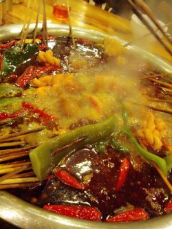 这家店,就开在路边一个防空洞里,所以叫老洞子串串,可巧又在我们公司旁边,上下班经常经过,所以也是经常去的。这家的锅底是正宗的老火锅,汤底油亮,飘着鲜红的辣椒,煞是好看。串串的种类也很多,只有你想不到,没有他没有的。一大把下锅,就是下面这个样子了,看着是不是很想来一串,嘿嘿。煮了一会,香味就出来了,飘着老远都能闻得到,所以生意也是很好的。…查看更多