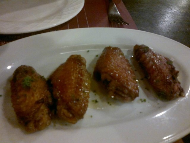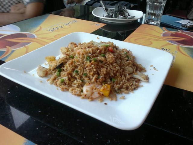这家餐厅地理位置不错,逛天河城逛累了,可以来这里休息一下,解决一顿。环境不错,属于挺幽静的一类,有点小资的感觉。服务员挺热情的,但是要收服务费。要了一份炒饭,一份蜜汁鸡翅,再加一份薯片。炒饭做得不错,份量也足,挺入味的;蜜汁鸡翅,稍微有点甜,外皮不算太酥脆,吃一个就感觉有点腻了,抹上酱汁吃口感会要好一点。…查看更多