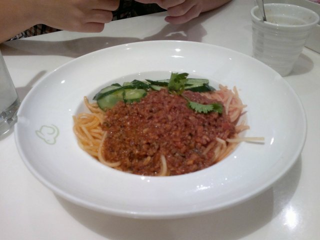 环境挺不错的,装修给人的感觉简洁、清新、自然,来就餐的人不算多,相对比较安静,服务的速度也挺快的。肉酱意粉,份量还算比较实在,肉酱挺多的,肥瘦适宜,有少许甜味,我不是太喜欢,口感一般;意粉口感不错,有点弹牙,挺爽滑的。价钱其实也不便宜,如果用团购券来吃会比较划算。…查看更多