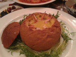公司聚会决定在金茂大厦天萃庭,包了个包间,不亏是金茂大厦,装修的很华丽,每个包厢都有一个专门服务的服务生,我们点了蛮多东西,菜式都很精致,而且装的盆子也很大,我记忆比较深的就是面包芝士蟹肉(具体名字有点不记得了),主要是非常好看,一开始以为是道点心,没想到面包里面居然是一个个蟹腿,还有浓浓的芝士酱,沾着吃,很独特,总的来说用餐很快乐,就是价格有点贵。…查看更多