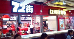 看到美团的团购 香辣肥肠饭+生熟地龙骨汤, 才16.8元, 觉得都算便宜,便团了一张, 准备去试一下新店.72街位于茂业百货商厦的地库,我是从东门中路的楼梯步行而入的.楼梯的门口有人在卖一种爬墙的玩具,用力一扔, 就会粘在墙上,然后翻着筋斗往下掉, 挺有意思的.我是中午近1:30pm去到的.谁知店家说团购卷要到下午2点后才能用, 但团购时说明1:30pm以后就可以用的肚子饿得狠, 不想等了,只好叫了香辣肥肠饭, 大元18元整! 坐下找wifi, 居然说没有!店的装修是普通装修, 我坐的地方在角落里,冷气不足, 但有很多人在吃,连鬼佬都有!肥肠是卤过的, 用洋葱+辣椒配着炒, 味道很好, 就是咸了点. 份量太少了, 最后是用汁送着饭吃的!性价比不算高, 但在东门这个地方, 还算可以了. 推荐!…查看更多