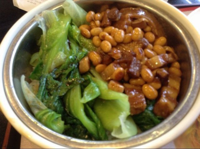 就在买房子的中介的旁边,看了一天的房子快累死了,就随便找了一家快餐店。      中午时间人不算多,但是中介说这家的肠粉还不错,里面的肠粉套餐还是蛮贵的,比起路边摊的肠粉那价钱可是天价了。一份素肠粉套餐要十几块。我最近不能吃肉就点了素肠粉,套餐里还带一杯热豆浆。卖相看上去不错,又薄又透,酱汁的味道积液还和胃口,里面有木耳和笋子,其实还挺好吃的,不过价钱真的有点贵了,热豆浆是红枣豆浆,豆子味特挺浓的,应该是打出来的豆浆,就是有点太甜了。      老公点了个红烧肉的单品,着份饭要十几块还说的过去,至少上面的肉还是挺多的,卤肉的汤汁伴着饭看着老公吃的那么香,我的也好眼馋啊,可是太油腻了,我不能吃。     现在随便一顿快餐吃下来都要几十块,顿时觉得生活不容易啊。…查看更多