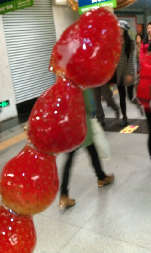 经过又一城,老公发现了这家冰糖护理,装修很时尚,店内也有很多不同的冰糖葫芦摆放着,有杂果的有奇异果的有士多啤梨的还有传统的山楂冰糖葫芦,不过价钱都有点小贵就是了。老公贪新鲜要了一串士多啤梨的,有点贵,10元才5粒,不过士多啤梨好大粒好甜,十分的好吃,而且外边裹了冰糖衣咬下去脆脆甜甜的,的确很好吃。士多啤梨又大粒又甜,很好吃…查看更多