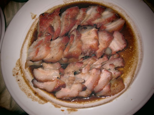 朋友推荐来这家饭店吃饭,这天一下班就赶过来了,原来就在广百新一城附近,往上走一段路就看见了。今晚吃了这么多菜式,最深刻印象的就是一个吊烧肉了,皆因看似排骨的大肉块用铁钩整整齐齐地挂在铁架上,下面就有一个盘子盛着油,吊烧肉的肉质嫩滑多汁,口感有点像烧排骨哦。…查看更多