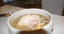 去了一次,是路过,看到门口装修的还不错,进去的时候感觉很像西餐店,原来是韩国菜,开放式的厨房,看到大厨在工作,中午时候人挺多的,我还不饿,朋友要了一份人参鸡汤,上来很快,一小锅,里面分量还是很足的,鸡肉一整只,里面看到人参,还有糯米,鸡肉很嫩,不过我不喜欢这种草药的味道,感觉一般,她喜欢就好,88元在这个区域倒是不算贵,也不知道韩国什么价位,环境真是很不错,服务也还好,很小资的地方,比较有气质。…查看更多