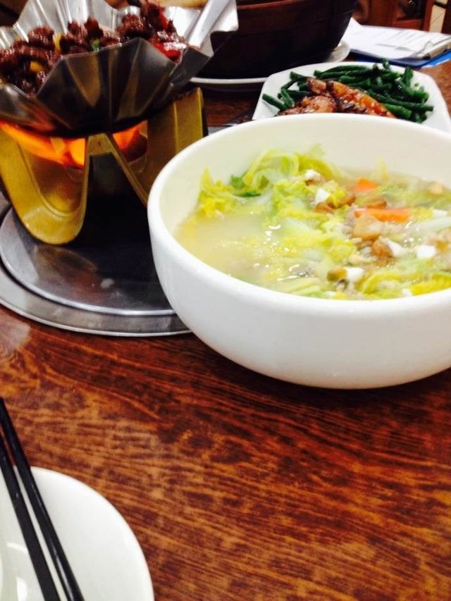 梅林酒店是一家粤式酒家。其中点了五个菜,干锅牛肉、上汤大白菜、干炒豆角等几个菜。         特别推荐这款上汤大白菜。非常美味!应该是娃娃菜和一些半肥的猪肉一起炖的吧。貌似加了一些奶酪,很香。比较甜美。赞一个。        其他几个菜比较下饭。…查看更多