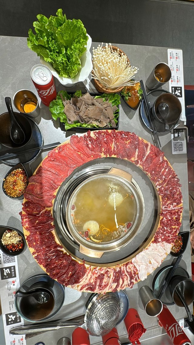 新鲜手切牛肉火锅 🥩🥩🥩✨吊龙:肥瘦均勻,涮5秒嫩滑带筋道,牛油香濃郁!✨匙仁肉:大理石纹路,入口即化✨胸口油:看似油腻烫熟后脆嫩,奶香回味超!✨嫩肉:現切牛肉薄如蟬翼,三秒涮煮嫩滑爆汁!油花入口即化,鮮甜肉香在舌尖綻放!✨牛舌:脆嫩彈牙,涮煮7秒爽口爆汁!獨特油脂香氣越嚼越上癮! 頂級牛肉現場即切,油花如雪花般均匀分布,肉質鲜嫩带彈性!輕涮5秒入口即化,肉香濃郁而不腻,搭配沙茶酱更顯層次。😋😋…查看更多