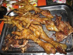 其实一直都在低烧中,但是因为有熟悉的小伙伴也去,那就得去啊,哈哈哈,好久也没啦。按着菜单一一来啊。爆烤鸡爪子:这个真的很惊喜,还是第一次吃烤鸡爪子,本来合计肉不多再一烤,该没什么吃头呢。结果好惊艳啊,很多肉很嫩头的。喜欢的不得了。辣炒鸡脖:这个还好,不是特别的辣,小辣而已,鸡脖鸡爪子都好喜欢呢。杏鲍菇:呵呵,杏鲍菇的串串,小店给我好多的惊喜呢,很多汁很有嚼头的呢。炝拌牛板筋:虽说一般烤串都爱吃熟筋,对板筋不太感冒的,这个炝拌的真心很不错啊,有点稍辣的。香辣烤虾:烤虾很大的,晕,没拍这个呢,没图也有真相的,吃过的。千岛酱鳕鱼:呵呵,烤鱼的,还有千岛酱呢,很特别的,很美味的。开始上的菜中,比较相中这个。糖烤鸡架:是那种QQ鸡架的甜口的,喜欢的喜欢的!牛肉串:串很大的,很嫩的。烤熟筋:熟筋熟筋,就是喜欢这一口。盐焗小人仙:这个也好特别啊,白白的盐上面,码着一排又一排的,好鲜灵的,平时不怎么吃海鲜的,这个让你想吃一个又一个的呢。就是弄下来有点难,后来服务员帮着弄下来的。碳烤茄子:呵呵,碳烤蒜茄子的,有蒜啊。吃肉中来点素不错的。麻辣排骨串:这个好赞的,还带脆骨的呢。小肉串:这个还真小的呢,串着辛苦,吃着不过瘾呢,加菜啦,又点了一些。烤花生:这个看着是很诱人吧,下酒好菜,我们没喝酒的,都很爱吃呢。拌花菜:量很大的,黄瓜也很新鲜。特色干豆腐卷:不是串的,是很大的卷,干豆腐卷,基本是我必点的菜,这个味道不错,有点葱的,但是味道不大的。烤面包片:自从喜欢上面包片了,就抛弃了馒头片,这个不油的,金黄金黄的,颜色,很是口水啊。。。人真的超级多的,想要大桌,真的得提前预定包桌的,要不然真的没地方坐啊,生意火爆的程度啊,看见门口的啤酒瓶子墙了没,哈哈哈。撸串的好选择啊!草莓罐头,好久没吃过了呢,好吃好吃真不错,久违的味道。…查看更多