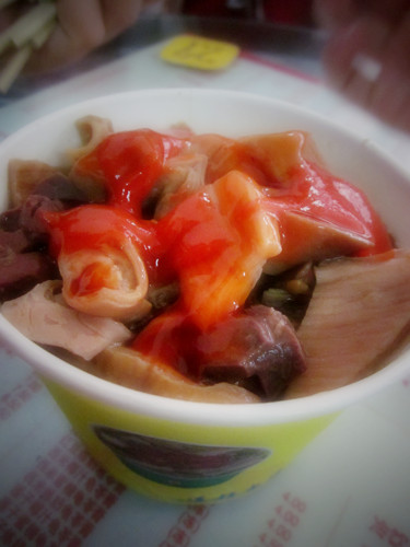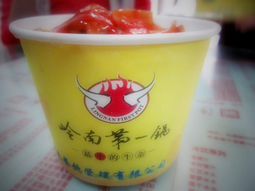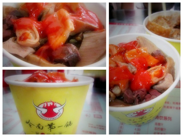 话说我地系永记点好餐之后,,忽然一阵香味飘过..原来隔离有间卖牛杂的岭南第一锅..之前经过上下九啊北京路啊之类的就有见过..不过就一直都无试过,,Wing姐同珍珍就过去买左两小碗翻黎试下了..味道都几浓郁,,不过D牛杂Size就切得太过细件了,,碎湿湿甘,,都唔会显得份量多D架啦..不过都好,,方便左我地五个人Share..辣酱的调味好重要,,哈哈..面筋的话其实我比较食硬身一D果种,,呢碗浸得比较淋..但就索晒D腩汁咯..不过不失,,呢两碗Total 9蚊..…查看更多