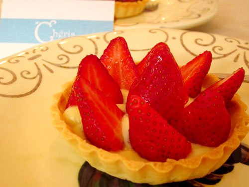 去完恩米之后,小鱼就话想去试下之前聚会无去试到的cheris,专登搭车去翻建设六再行过去,其实之前经过,觉得里面D环境好舒服,蓝白设计我喜欢,但就感觉一定唔会平得去边,果然,消费唔算平咯小鱼贪靓拣佐个无花果挞,而我就贪水果多拣佐个士多啤梨挞,好似都系15--18蚊之间,具体几钱唔多记得了无花果挞酸味好重,据说味道一般,我只有幸品尝过一件果肉,的确酸,唔多适合我。士多啤梨挞就易入口好多,而且水果真系好丰富啊,哈哈,推荐呢个啊,下面D挞皮系曲奇般的口感,加上水果的鲜甜,好碰撞,好突出现场周不时都会有一D外国人出现,好似当日我地刚去完UNIQLO,揸住袋裤过去食野,就比隔离台的两个外国人问店铺地址,哈哈,所以得闲去锻炼一下英文应变能力都唔错…查看更多