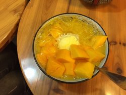 在静安寺这边吃完晚饭来这里吃甜品,好小的店面,甜品种类还是挺多的,我们3个人一人点了一份,榴莲忘返,珍芒亮晶晶,珍芒小丸子。榴莲忘返:我同学点的,个人是不喜欢榴莲,不过这个做的味道还能接受,还是喜欢旁边的血糯米。但是喜欢榴莲的人超爱的;珍芒亮晶晶:名字好听,芒果很多很甜,亮晶晶的东西不是很爱;珍芒小丸子:我点哒!最喜欢小丸子糯糯的了,芒果也很甜,配着冰激凌很好吃;…查看更多