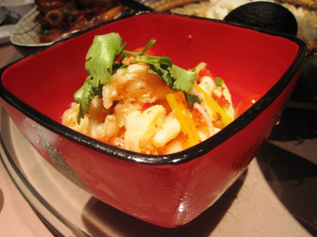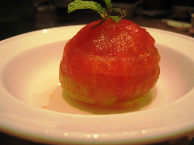 据说是从日本越洋过来哒柚子番茄,(有柚子味哒番茄)立马对它刮目相看。可惜实在是吃不到柚子味;神马同学呢是品酒达人,为参加活动还特地配了两只酒,一红一白,据说是按菜式为女士们特意准备哒,大家边品酒边等人齐上菜