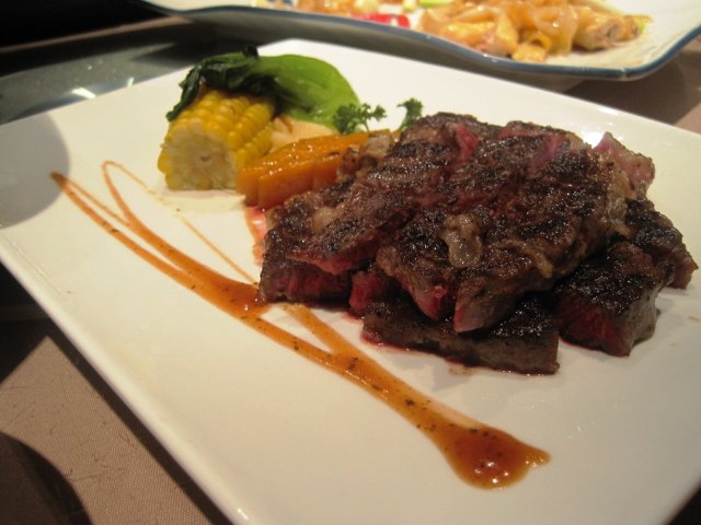 海港小炒皇:卖相很好哒一道菜,据说是放了虾皮、韭黄、葱拌炒,再拿生菜叶包着吃;果木烟熏牛扒:因为等人太久,开动的时候已经冷了,大打了折扣,相信如果上上来就吃口感一定不错;王子炒饭:有点类似海鲜炒饭,色泽金黄上汤南瓜:南瓜苗很清脆、汤汁奶白算很简单很清爽哒一个汤,蛮适合酒足饭饱后值得一说的是这里的服务和环境,席间换了几套碗碟、且每套都不一样,细节把握的很好;环境跟出品都很fashion,空间感很强,大厅的大屏幕放着的走秀model,很bar滴感觉。哒子们吃哒很开心,直到十点大伙才意犹未尽哒撤退。…查看更多