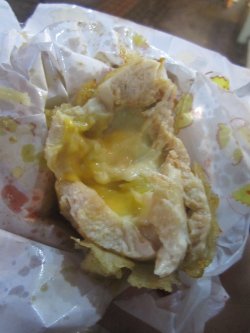 传说中的爆浆鸡排,特地去的。毛20块一块,好贵啊鸡排不大,但是很厚实。基本上是圆形的的咬开来,鸡肉不好吃,很厚实的感觉,像鸡胸肉,一点都不嫩,好老,除了皮子外,别的都没什么味道。中间的芝士让人很失望,不是拉丝的,感觉都流出水来了,估计是芝士质量太差了,好难吃,性价比还那么低…查看更多