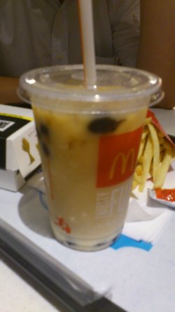 麦当劳现在也走街头风了,卖起了珍珠奶茶。这个奶茶的噱头就是珍珠是五颜六色的,广告上看着好好看,实物很挫。。。珍珠颜色不鲜艳,味道嘛和普通的珍珠奶茶差不多,珍珠倒是很q,糯糯的,奶茶的味道不浓郁,蛮甜的,仅此而已,还不如喝可乐…查看更多