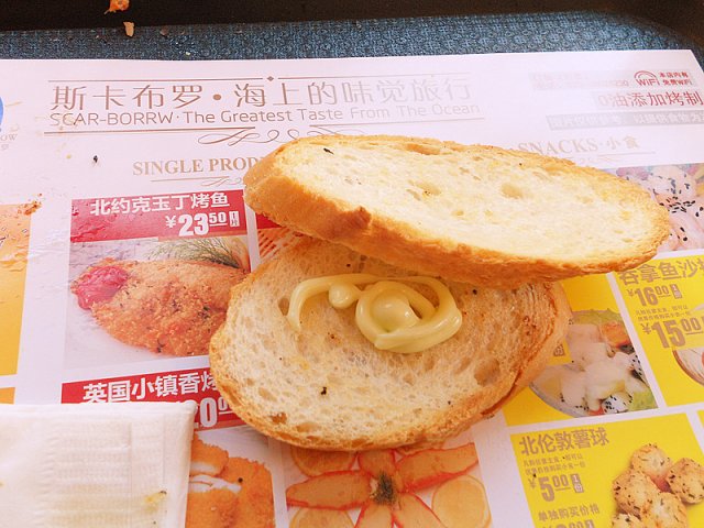 店比较小巧玲珑很居家的感觉,三五张桌椅。卖的都是烤制的食品,有很多优惠套餐组合,模式感觉和麦当劳肯德基的差不多,但老板说他们没有油炸的,都是用特殊酱料腌制后烤的,保持住了食物的营养,饮料有雪碧,芬达,乌梅三种。吃的烤面包和烤鱼,这里的烤鱼严格的来说是烤鱼条,是鱼肉和粉做出来的鱼条,吃不出来鱼的味道,烤面包很脆,有番茄沙司和千岛酱,夹着千岛酱吃好吃不少。食物份量不多。只能用来打打牙祭。…查看更多