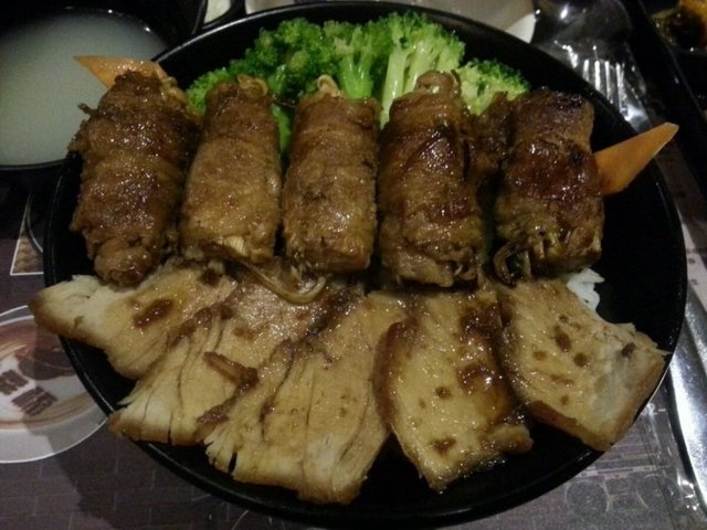 朋友推荐的一家简餐餐厅,刚好外出办事在附近,就过来吃了,这里饭比较多,扒类比较少,面食我又不爱,所以点了金针菇肥牛叉烧饭,上来看到分量很大呀,大大块的肥妞卷着金针菇,做得很入味,就是块头有点大,我吃起来有点费劲,叉烧做得有点太老了,饭的分量也很足,要是再多加点蔬菜就好了,整体味道还是不错的,推荐。…查看更多