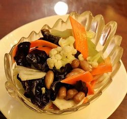 地点:重庆道197号(云南路口)啊环境:中式装潢特色,二楼有很多中式特色名字的包间,适合商务宴请。大厅也很适合举行中式婚礼。菜品:素什锦         天津特色菜,很清爽,胡萝卜、芹菜、木耳、菜花、果仁,各种食材统一的特点就是都很脆,口味清淡营养丰富。酱牛肉  肉质好,煮地软烂,没有粗的纤维也不会赛牙,无香味很好吃。双色山药泥,山药加工得很仔细,山药没有粗粗的丝。山药泥一个淋的蓝莓酱一个是柚子口味的,酸甜口味很受欢迎。赛螃蟹 又一道特色津菜,特别考验厨师的功夫呢,鸡蛋白被炒得超级蓬松,酱油、醋、姜末搭配起来制造出螃蟹味道,特别好吃,虽然食材简单但是真心美味。香麻芋头 看外表以为是糯米做的点心,咬一口才发现非常细腻绵软,原来是芋头泥做的,调了绿茶口味,外面又裹了芝麻,点心更香,芝麻和芋泥也制造出细腻和香脆的双重口感。…Read More
