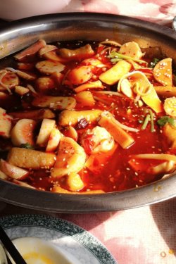 又油又辣版的麻辣烫,但人多吃比麻辣烫实惠~~自选三样主食(牛肉,鸭肫,鱿鱼等)三样副食(蟹柳,虾丸、肘花肉等)~~加店家配好的素菜(8元一份),放锅里一起煮,加辣油,选的是微啦,刚刚好~~菜品多,蔬菜、肉类的都很多,米饭付完钱后可无限量供应。觉得还可以,爱吃川菜的可以多去、价格公道,不贵、就是环境脏了点~~…Read More