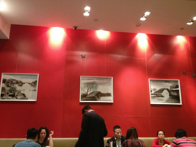 环境:必胜客每家装潢都大同小异。但是又各自有独特的布局,这家门口摆着必胜客的厨师摆设,内堂一些卡座有竖着,有横着,靠近厨房和点单区。服务:内堂有很多服务员,服务还好吧。点餐和买单呼唤都有应声赶来。当时店内人不是非常多!菜品:午餐有实惠的套餐,我要了一个欧式培根饭,炒饭上的很快,但是味道就麻麻滴。美式土豆沙拉,味道也很单调,土豆很咸。百事可乐一杯。冰镇巧克力熔岩奶茶一杯。这个我称之为爆炸珍珠奶茶,因为巧克力豆吸上来后撞到牙齿会瞬间爆裂,整个口里充斥着巧克力的香味。这么喝奶茶也很独特,感觉很好玩~最喜欢必胜客这款奶茶了~总体感觉:偶尔来个饮下午茶,休闲的午后时光还是不错滴。…查看更多