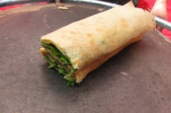 山东大煎饼酒仙桥南路电子球场社区附近, 酒仙桥。就在路边的一个煎饼档口,看起来很干净呢,而且都是现场制作的,味道不错,要了一个山东杂粮煎饼里面放了很多的生菜还有葱花,一口咬下去非常的酥脆,而且里面还有很多的咸菜丁,很好吃。…查看更多