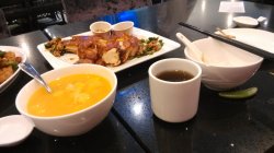 千秋膳房看到名字还有点不知道吃什么呢,走近后服务员很热情的递上菜单,原来是吃台湾菜的呀,说起台湾菜大家就会想起三杯鸡,这个当然要点咯,还点了皮蛋瘦肉粥、大饼卷牛肉、咸蛋黄四季豆,三杯鸡量不大,但是味道很浓的,另外大饼卷牛肉更是让人惊喜,大饼做的很松软,和着里面的牛肉和蔬菜一起吃,口感非常好。咸蛋黄四季豆从小时候就满喜欢的,不错的,菜的价格也还行。…查看更多