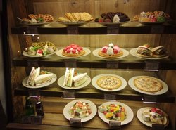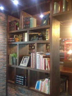 门前的大招牌食物展示柜里面的装饰书柜,这里好安静,好舒服,三五知己聚会的好地方。这是台号,如果食品好了,这玩意就是震动,意思就是叫我们去取。柚子茶(热18元):这杯子好大呀,但太甜啦,喝了一半叫服务员加点白开水,还是好甜。…查看更多