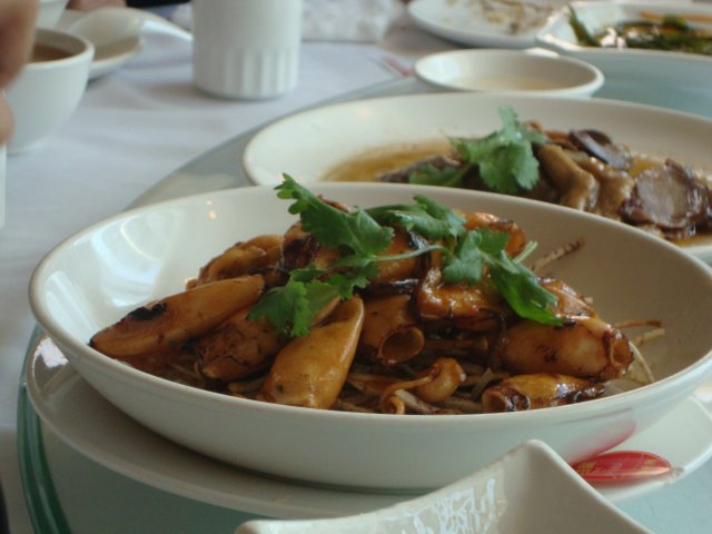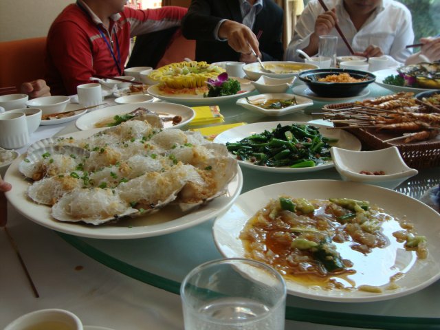 公司的晚会选在这个酒楼办了,我们在大厅摆了二十桌,刚刚好。看完表演都8点了,大家肯定比较饿。先给我们上了个潮式卤水拼盘,众人齐下筷,一夹一试,咦!有的放下筷子,在等别的菜上,有的继续夹,味道一般般哟。美极基围虾:虾算大的啦,在虾背开了一刀,看到虾肉,非常吸引人,香。柴紫菜蚝仔汤:蚝仔有沙子,汤也没什么味。鲜核桃妙百合木耳:木耳好脆口,百合鲜甜可口。蒜茸粉丝蒸元贝:超爱吃的,但粉丝很短很短,元贝很小一个。还有其他的菜,铁板牛仔骨,菜干腩肉煲,虎皮尖椒炒猪颈肉,青瓜蒸鲳鱼,芹蒜豆干仔炒腩肉,上汤浸时蔬。人虽然蛮多的,但服务还是蛮周到的,服务员不时倒酒。叫他们拿什么速度也蛮快的。…查看更多