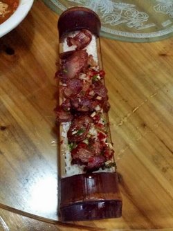 湘西山寨这家店开在田林路上,是朋友介绍后光顾的。这家店面不大,但是店内装修非常别致。比较喜欢它家的腊肉竹桶蒸饭,腊肉是店家自己腌制的,肥瘦相间,比例适中,腊肉放在米饭上蒸后肥肉的油都被米饭吸收了,搭配上些葱花等调味料后,味道更好,竹桶内的米饭颗粒分明,略带点竹桶的清香,整体口感非常好吃。…查看更多