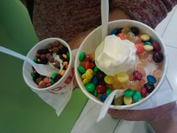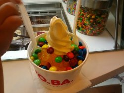 这家店算来福士B1最好找的店了就在电梯下来对面门面挺明显但是没座位没围栏算是三无店铺买了拍个照都有点难只能边走边吃yoba家的优惠券很挂三不能累计一次只能用一张而且一张只能买一个不管大小结果50和5的券都超级悲剧一个买不到东西一个吃到牙齿冻住。。。…查看更多