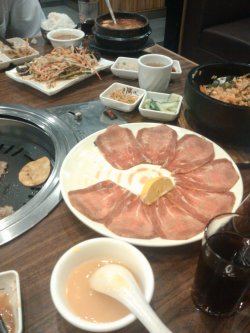 第一次去拿着点评的优惠短信去的但是点评那个手机通道真的不是一般的差花了5DB,2个手机一条都没收到最后挣扎下收到一条赶紧用了买了3份肉送一碗石锅拌饭。韩风一直是我认为的最好吃的一家烤肉了价格小贵不过很值哦!其实最超值的是可以续碗的南瓜粥和板料!…查看更多