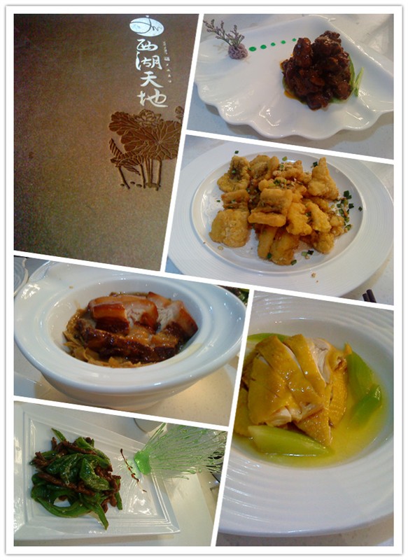 趁着有两张为100的现金券携同朋友来到农讲所的西湖天地,开始以为碟头会好大,本打算只用一张,后来点菜发现份量好小的,就全用上了,最后不用花一分钱就品尝了这一餐饭。西湖天地的环境还是挺不错的,可以吃饭或者喝茶都ok~我和朋友选择了靠窗的位置,窗的对面就是广府。点了六个小菜苏州东波肉:啖啖肉..不油腻灌汤包:一咬就有水出来啦..肉质甜..七味九肚鱼:味道重,脆脆的外层内里松软。杭椒牛柳:炒得不错,牛柳好嫩,以及好香的杭椒。陈年花雕鸡:份量好小的花雕鸡,花雕味好重。无锡小排:味道感觉不好吃,不是酸甜,感觉是干炒的。虽然每碟的份量都比较小,但是六碟加起来就绝对够两个人吃的。我们还是饱着肚子走出门。虽然未曾有机会去杭州,但是能有机会品尝杭州的美食,实在是幸运的。也很开心。…查看更多