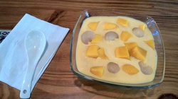大夏天的,点了芒果椰奶西米布丁捞,芒果实实在在地放了很多块,蛮甜的,西米放了很多,吃起来软软的,糯糯的,圆润的感觉很舒服,布丁比较甜,配合着椰汁吃减少了甜腻感,总体不错,就是贵了点,将近20元。…查看更多