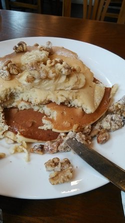 点了香蕉核桃松饼,量非常的大,足足有三层,松饼吃起来有点甜甜的感觉,蛮香的,软软的松松的,核桃也很香,香蕉是热的,吃起来非常的甜,而且软软糯糯的,绝对美味,胃口小的可以三个人享用。…查看更多