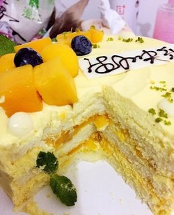 派悦坊家的蛋糕做的都很漂亮,光看外表的话每一款都让我有种买买买的念头,最后选择了6寸的芒果空气感蛋糕,惊喜的是上面的芒果材料的确是新鲜的芒果和蓝莓,蛋糕口感一共可以分成三层,每一层里面都会有些许的开心果,口感很香浓,开心果果粒很脆哦。…查看更多