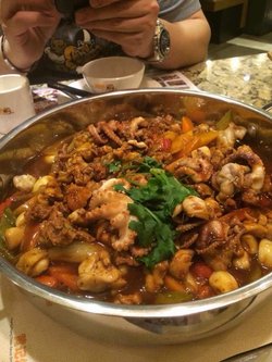 这个是报着挺大的期待去的,不过排队真心有点长。点了3个主菜和几个蔬菜,价格不便宜,吃的时候就是一层层堆上去,焖一下吃。对秘制调料不感冒,味道是挺浓郁的,章鱼和鲶鱼都不错,味道能进去,鸡翅一般般。主菜本身附带蔬菜锅底,青椒红椒小番茄洋葱胡萝卜地瓜之类,只是主菜的量实在有点少。服务态度还可以。…查看更多