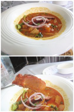 法式烤蘑菇汤配烟肉 烧猪颈肉蔬菜米纸卷配越式甜酱