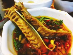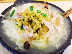 中午来就是搬起塑料凳子在外面坐的命,生意实在太好,吃过几次就中了酸萝卜鸭掌的毒。味道非常清淡,鸭掌很入味,一碗有三只,酸萝卜比较温和,汤可以全部喝完。小碗自己拿,有榨菜可以伴着米线吃,各种菜也可以单独加。可就是米线煮得太软太死了。…查看更多