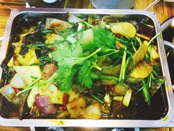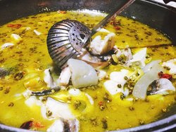因为现杀现做的缘故,距离上桌请做好起码20min的等待准备,不适合正当饿时的选择。有前后一小一大两处用餐空间,优势是离卫生间和电梯都近,来和离开都方便。团购三人餐一斤七两的鱼只够两人吃啊两个人,椒麻味超清淡,不是红油的锅底。梭边鱼肉质偏老基本没小刺,口感一般。蟹粉蟹籽包就是蟹肉棒改型重现,里面也有弹牙的籽状物,喜欢蟹肉棒的也会喜欢这个,团购只给四只。菜品质量需谨慎,在莴笋叶里面吃到钢丝球的丝一不留神就事态严重了啊!服务人手严重短缺,忙不过来。…查看更多