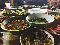 独门冲烤鱼下面,何王氏串串对面夹了一个炒菜馆,叫味老大土碗菜,开在桂花园血库这一带的店味道几乎都有共同联系了。上菜节奏快,盛菜的不是土碗,吃饭喝酒的才是。店内主推一个特色是肉质脆的鱼,并附加解释说该鱼吃胡豆长大,第一反应就是在广州吃过的脆肉鲩,肉质脆化的草鱼,就还挺特别,但是更喜欢酸甜味的瓦块鱼。牛肉血旺没有感觉,水煮肉片完全没味,整体来讲特色菜炒得并没有多好吃。…查看更多