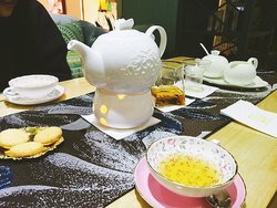 看菜单就了解,这家店真的是在专心卖茶,红茶到水果茶,种类不少,的确是teahouse一个。这边茶基本都是按壶卖,一壶40-50多块,一个壶配一个杯,加杯20。可能初看觉得收费怪怪的,但是如果两个人去点一壶加杯平摊下来人均才30左右好划算呐还是。点了加皇冠标识的「桃花」,店员端上来是一整套set,用烛台加热,糖奶免费提供。桃花这款甜香味重,跟白桃乌龙口感很相似,不用加糖加奶口感更澄澈香气体会更浓。虽然菜单上写说一壶只免费续水一次,但是店员非常热情主动地来给我们续了两壶,因为是茶叶不是茶包,加水两次味道也没有特别减弱。客人不多,整个协星都是,这种安静正中下怀,只是觉得内空间布置的有些沉闷了,还需要一点轻松活泼。服务态度真的是客气又周到,希望能有工作服,区别于顾客且更专业。…查看更多
