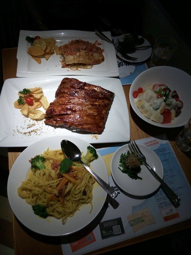 卡朋西餐 卡朋西餐 (海珠城光荟) 2015-01-27抵吃系呢度的最大特色,我就只能系咁讲。西餐来讲,呢度真系够抵吃的,而且本身的优惠都已经系好多。不过味道吧,我个人认为就一般。好似个南瓜芝士焗意粉噶,就分量多,南瓜味吃唔出咯,唔讲都真系唔知道啊。烤猪排肉,分量好足,但系呢个味,真系超级浓,放的调味料未免太多啦。就水果沙拉唔错,分量足,而且用的都系新鲜的水果,好正。…查看更多以上食记乃用户个人意见 , 并不代表OpenRice之观点。赞好分享卡朋西餐 卡朋西餐 (海珠城光荟) https://s.openrice.com/KtLT0m0YNuE00检举 张贴 评分3味道4环境3服务4卫生4抵食用餐途径堂食