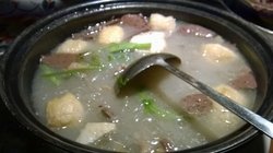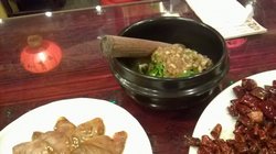 昨天小年夜,堂弟请大家在这里聚餐,我和堂姐晚到了四十分钟,入座的时候发现菜都是热呼呼的,色香味上立马就吸引我俩了;一口热呼的龙骨海带汤下肚,整个人都热起来了,汤浓而香甜,骨头煲得酥软,瓦锅老火慢烤,价格¥20,值得推荐;锅巴配上带皮肥肉,脆中带软,软中带酥,酥中又有特制辣酱的香味,让一向不喜欢吃脆食的我忍不住的重复下筷;剁椒鱼头是堂弟特意点的,鱼肉鲜嫩,剁椒的辣味加上豆皮的鲜味通过小火,慢慢的煮入鱼肉之中,是不错的下饭之选;清炒土豆丝和小炒田鸡肉也是不错;饭也不错,在昨天这种寒冷夜,吃起来也一直热呼呼;唯一美中不足的是血鸭,血下的不足量,吃起来只有鸭味而没有血的配合了,鸭肉有点太老,汤汁没有收好,不如我第一次做这道菜时的口味;对于他们服务特别要称赞一点,都是选择年纪比较大的中年阿姨们,他们在服务中都带有一种恭敬谦卑的态度,很是小心,笑容让我觉得特别亲切,就像邻家的婶婶;…查看更多