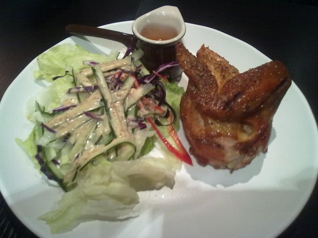 上个月中了凡高微博的全单五折,果断和老公去试试看过食评,坐下就毫不犹豫得点餐了点了四分之一只烤鸡,本来我想点二分之一的,但是老公说太大的结果一上桌才发现,原来四分之一也挺大的点了越南拌饭,味道不错,就是分量少了点,我一个人吃都不够饱呢最最后,点了几乎每个人都点的串烧,我们就点了海鲜其实就是两三只虾、鱿鱼和不辣的灯笼椒串在一起味道不错,虾真的挺大的服务不错,我们想坐卡座,很迅速的收拾好呢结账,两个人吃到饱都是几十块,五折真的超级划算…查看更多