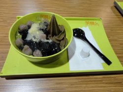 芋贵人 芋贵人甜品店 2012-04-01火的不得了的甜品店。于是就好奇的过去试试。大概排队排了十分钟轮到我点单,收银的速度还是蛮快的,拿东西的那个服务员口音很台腔,感觉是台湾人,服务态度很好很亲切,超级喜欢那个勺~~排队时候研究菜单,点了寒天二号,千万要吃冰的好吃啊~~~里面是寒天,嫩仙草,奶油球,芋Q和珍珠。珍珠挺普通的,奶油球就是冰淇淋,也普通。寒天还蛮特别的,像果冻又不是果冻,透明的。下次准备来试试别的几种。…查看更多以上食记乃用户个人意见 , 并不代表OpenRice之观点。赞好分享芋贵人 芋贵人甜品店 https://s.openrice.com/KtLT1003Km200检举 张贴 评分4味道3环境4服务4卫生3抵食推介美食寒天2号