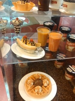 坐落在书店里面,浓浓的书香味,夹带着浓浓的甜蜜感~~这里的环境给人一种很温馨,清净,在繁华的城市打滚累的时候,这里是一个很好的选择点~~在书店里面选一本你喜欢的书,然后坐在一个温馨的环境里看,是一种很好的享受,点上一份,华夫加雪糕~~冰冰的雪糕淋在暖暖的华夫上~~慢慢的融化渗入饼干里面~~饼干中浓郁的雪糕味,滑滑的~~那种感觉挺不错~~本来想点榴莲雪糕的,不过没有,店员介绍了一个特别的果味雪糕~~就是甜了一点点,据说雪糕是天然成分,没有添加剂~~呵呵~~…查看更多