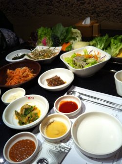 交通与地理位置:东方路971号钱江大厦,靠近浦电路地铁站环境与卫生:烧烤味弥漫这个大堂,整体风格比一般韩国料理上点档次味道:餐前送了一大盘蔬菜和小食。印象比较深刻的是调味牛排,腌的很透,肉质也很嫩。用送的各类生菜包着烤肉,再沾上酱料,解了肉的油腻。石锅拌饭就很一般,米饭有点硬,不入味。价格:2个人吃了250元不到,感觉还有点没吃饱。。。…查看更多