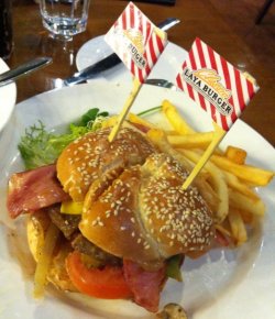 南京西路仙乐斯1楼,靠近地铁人民广场站。环境很棒。招牌的芝士汉堡,一个面包里装了满满的芝士,用配菜的肉,蔬菜去占芝士,可以拉出长长的丝。芝士味道很浓,尤其是配上烤肉吃,但是干了好像吃口香糖,所以要乘热。鸡尾酒有一款french martin,是水果味的,甜味酒味搭配的很好,适合女生。人均100多。…查看更多