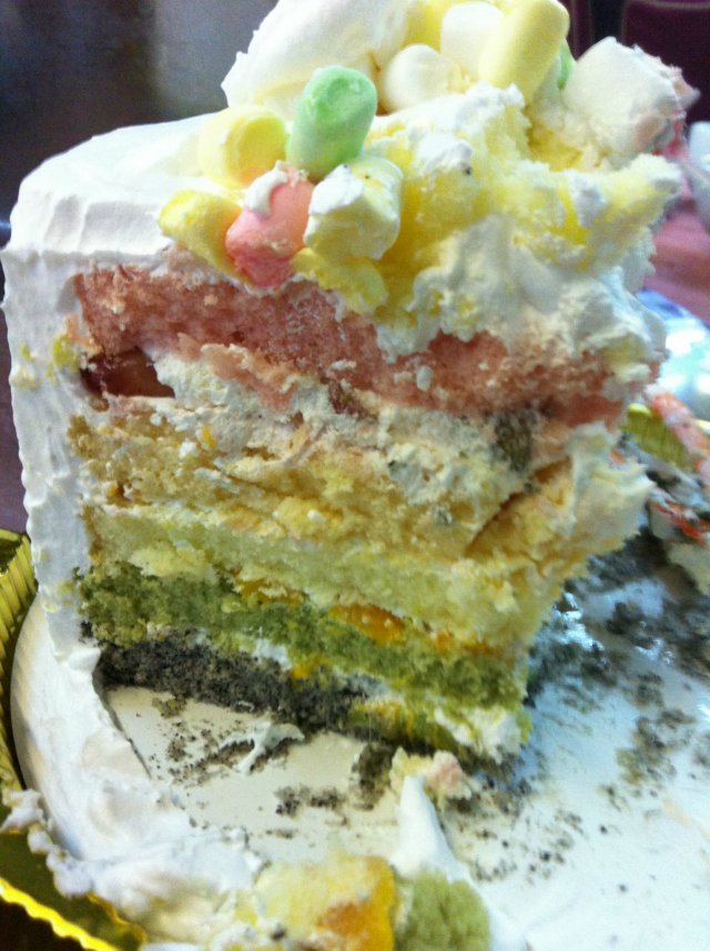 美心又推出了新品蛋糕,简单的外表 切开让大家有意向不到的结果呢。蛋糕的表层全是白色的,上面有一些五颜六色的东西 其实就是我们小时候常吃的棉花糖,第一次吃到蛋糕是棉花糖做的,和新鲜。切开里里面,大家都惊喜不断。 这款彩虹蛋糕在网路上就看得多,实际上还是第一次吃过。7层分别是用不同的水果做成的,满足了7总不一样的口味。 好吃…查看更多